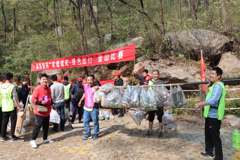 經過稱重,本次登山比賽共有383.8kg垃圾被瑞陽人從魯山各個角落匯集到山腰停車場。“拾揀一片垃圾,成就一方美麗”,是本次登山活動全體瑞陽人對美麗魯山的美好祝愿。